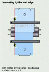 层压即由两种或多种纸张经过处理后成为一种合成材料,所有处理前纸张材料在层压前须以首尾相接的方式排放纸张相接越吻合,层压结果就越经济。这对材料输入和损耗处理同样适用。是铝箔纸,纸张覆膜,复合材料等的生产设备纠偏控制原理。